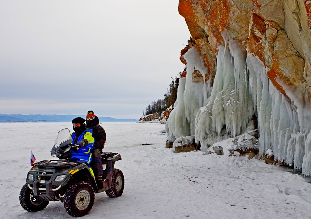 ATV can travel easily both along asphalt roads and through the Taiga forest, along smooth ice floe of Baikal and through deep virgin Imagesnow-fields of the mainland.  In straight and more or less smooth sections of the route ATV can reach the speed of 100 km (!). When crossing cracks in Baikal ice (which can be up to 1 m wide) or when moving through the forest area, the speed is certainly much lower (30-40 km/h), but impressions after such a ride will never make you feel indifferent!