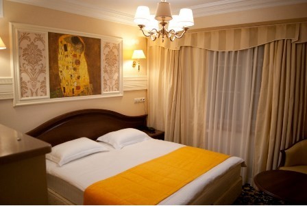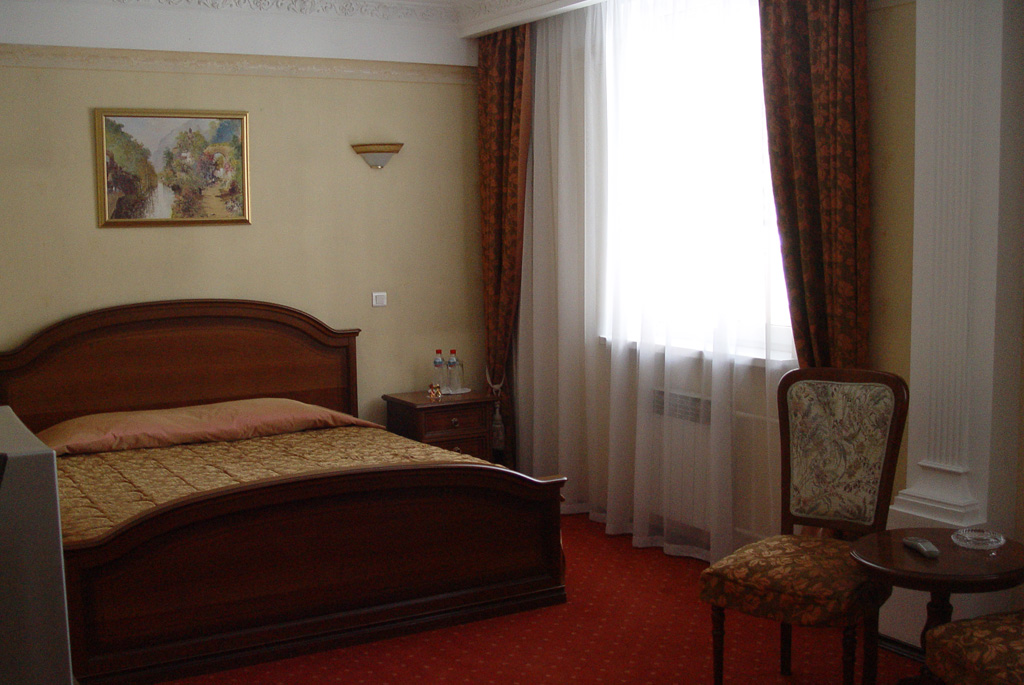 The hotel’s furnishing is up to the highest modern standards. At your service, there are 64 rooms – each an example of perfect taste and design. The hotel has a variety of classic interiors: a magnificently luxurious presidential suite, spacious junior suites featuring elements of novel classics, a gentle romantic suite, and classic studios. Standard rooms are designed in two variants: “for ladies” and “for gentlemen”.