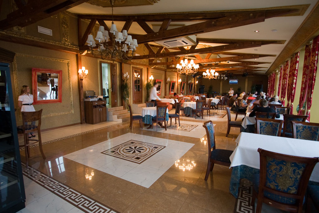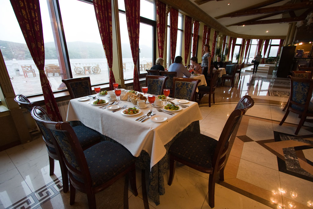 80-seat panoramic restaurant serves Russian and European cuisine, as well as a daily breakfast. If the weather allows meals can be enjoyed on the summer terrace.